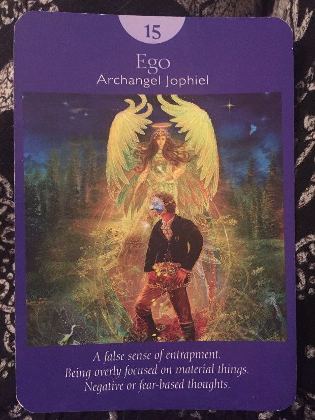 It comes as no surprise that tonight I pulled card ten in the Angel tarot deck, representing ego and pointing us to Archangel Jophiel. I have been feeling stressed and worried the last couple days, wondering if my efforts are enough. I know that I am abundant and always taken care of but I still want to be sure I am doing all I can on my part. These worries mask the true situation at hand:: an emptiness that cannot be filled by possessions or material security but only by a fulfilled spiritual path. In saying no to the temptation to worry or fear, I ask Archangel Jophiel to help me to see myself for who I am. Receiving this encouragement from my angels and sitting in meditation I feel more aligned and thankful to know I am on a beautiful path. How does todays card speak to you?