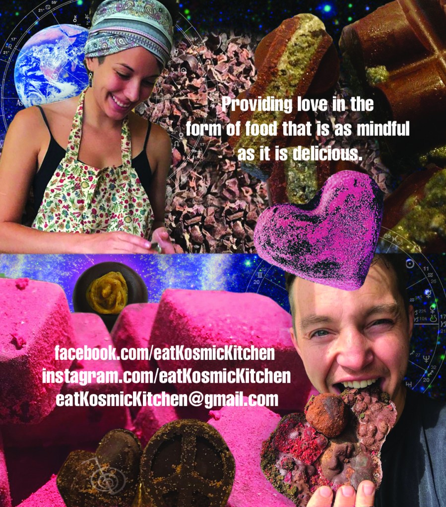 “Without a doubt the most delicious, nourishing food I’ve ever experienced on a retreat. James and Krista are wizards in the kitchen creating meals with not just the body, but the mind and the spirit considered as well. I highly, highly recommend Kosmic Kitchen.” – Stephanie Burg